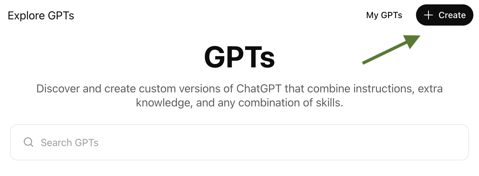 Click “Create” inside ChatGPT (available to ChatGPT Plus users)