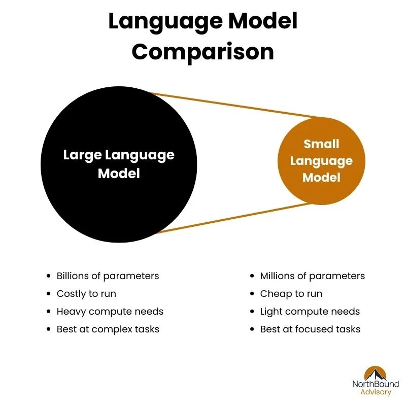 At NorthBound Advisory, we work closely with startups to turn these strategies into practical results. Whether you are a founder making your first AI architecture choices, a VP of Engineering looking to optimize costs, or a CTO shaping a hybrid model roadmap, we can help you navigate the trade-offs and design what fits your business. If you are exploring how small language models and large models can be combined effectively, our team is here to coach, guide, and build alongside you.